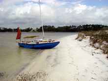 Tired and contented, I settled for a little trail mix for dinner and resolved to eat a big breakfast. The new 4.4 pound Bruce anchor went out - I was experimenting to see it it was big enough for Oaracle - to keep the boat just off the beach and floating at low tide. A check of the weather radio revealed an unchanged forecast. Although there would be considerable cloudiness for the next couple days, chances of rain were minimal and wind forecasts were favorable. With hatches open to catch the easing breezes, a very gratified sailor went to sleep in Oaracle's small cabin.