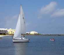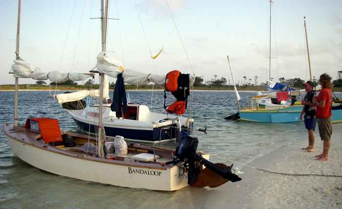Because of my head start, I was the first from the Fl 120 there and the island was deserted except for a large powerboat on the southeast side. The occupants of that poor powerboat were about to have their seclusion shattered; not only as the flotilla of the Florida 120 headed for the island, but there was also a gathering of Catalina 22s congregating there. I did a little exploring of the island, puttered with a couple boat chores, and greeted the next few boats in. After a light lunch, I retreated to Oaracle's cabin for a nap to make up for the previous night's short slumber. There's a note in my log, "Hoping Scott Gosnell gets here with his new Normsboat soon so I can go for a sail."