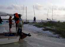 | The fleet beached and anchored at Sand Island, south of the Pensacola Naval Air Station, on Friday night. |