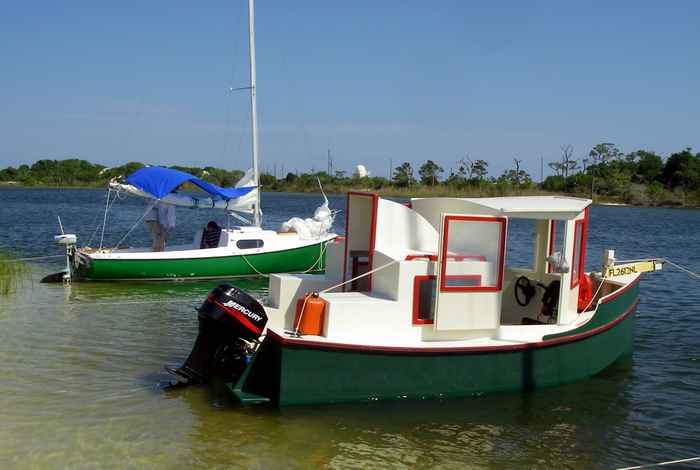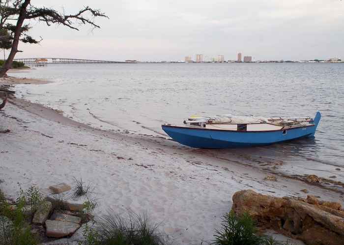 Scott made some changes to the Thursday-through-Sunday event (run the week after Mothers Day). One was it would not start at the funky Pirates Cove, just over the Alabama line. Instead, you could start from wherever you wanted, but on Thursday night, you were expected at Spectre Island, eight miles or so east of Navarre Beach. The flexible starting location encouraged flexible starting times. Scott was planning to be in the area a day or two early for some extra sailing, and so were some other participants. My plan was to drive over Wednesday afternoon, get Oaracle (my Jim Michalak Frolic2 design) in the water. Sailing buddy Scott Gosnell, in his new Normsboat Fiddlestix (another Michalak design), and I had a rough plan to meet that night, perhaps at Navarre Beach if conditions allowed.