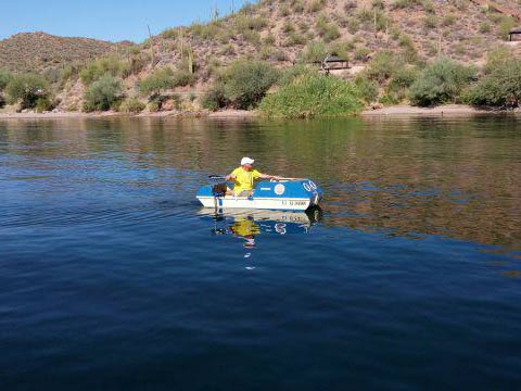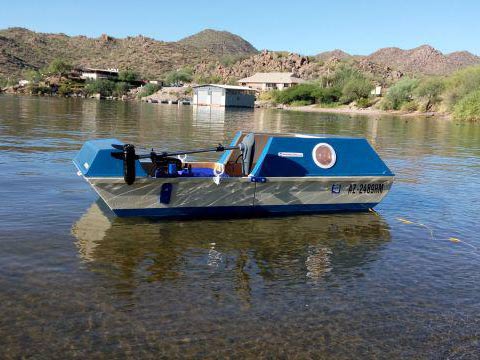 As seen in the photo above, a small boat can be fun and cool looking. As stated earlier, this is an ideal boat for the lone sportsman, and it should be personalized with many additional features. I am going to place the solar cell charger on the cabin top, for constant charging when the motor is not in use. After all, this is Arizona, where the sun shines almost every day. Further, I am going to add a large water bottle holder, a small insulated food storage container, and various lighting pods for night time use.