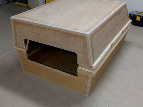 Here, the two hulls are placed atop each other, just as they would be when preparing for transport. Note how each seam and corner and edge has been fiberglass taped. This is the Tape & Glue Process I was discussing earlier. Without this, the hull would be subject to water intrusion into the plywood edges, and in no time the boat would start to deteriorate, eventually becoming a safety hazard. So, follow the detailed instruction, and your boat will last for a long time. After this process is completed on both modules, waterproofing of the entire hull, inside and out, is required. I specify a particular process, but you can use what has worked for you in the past, but do not eliminate this step in the assembly.