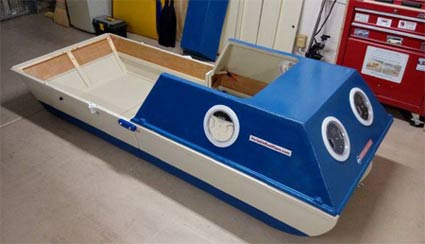 This is a trilogy of photos, showing the open hull, then partially closed, and finally completely nested for transport or storage. All gear, including seats, can be stowed in the forward module for this purpose.